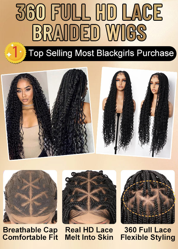 Unlike a lace front wig that only has lace at the front hairline, A full HD lace braided wig is a pre-braided wig with full coverage of high-definition lace, and all hair strands are hand-tied into the lace base. This wig provides a ready-to-wear braided hairstyle while ensuring a seamless blending. The full HD lace design makes the wig soft and comfortable to wear. It's also more versatile in styling, allowing wearers to part anywhere they desire and style it into updos or ponytails.